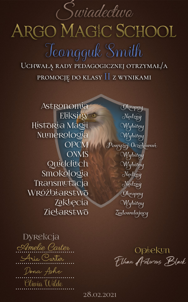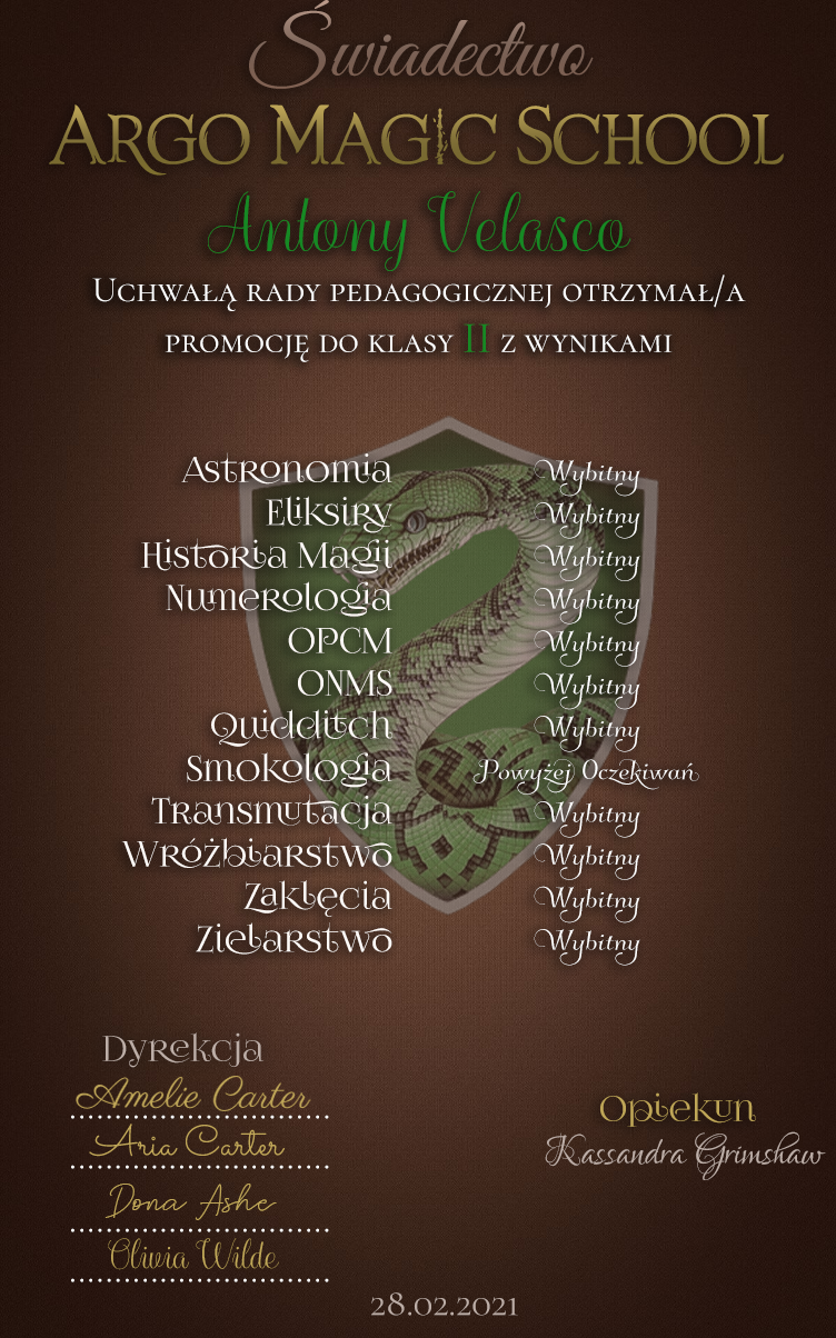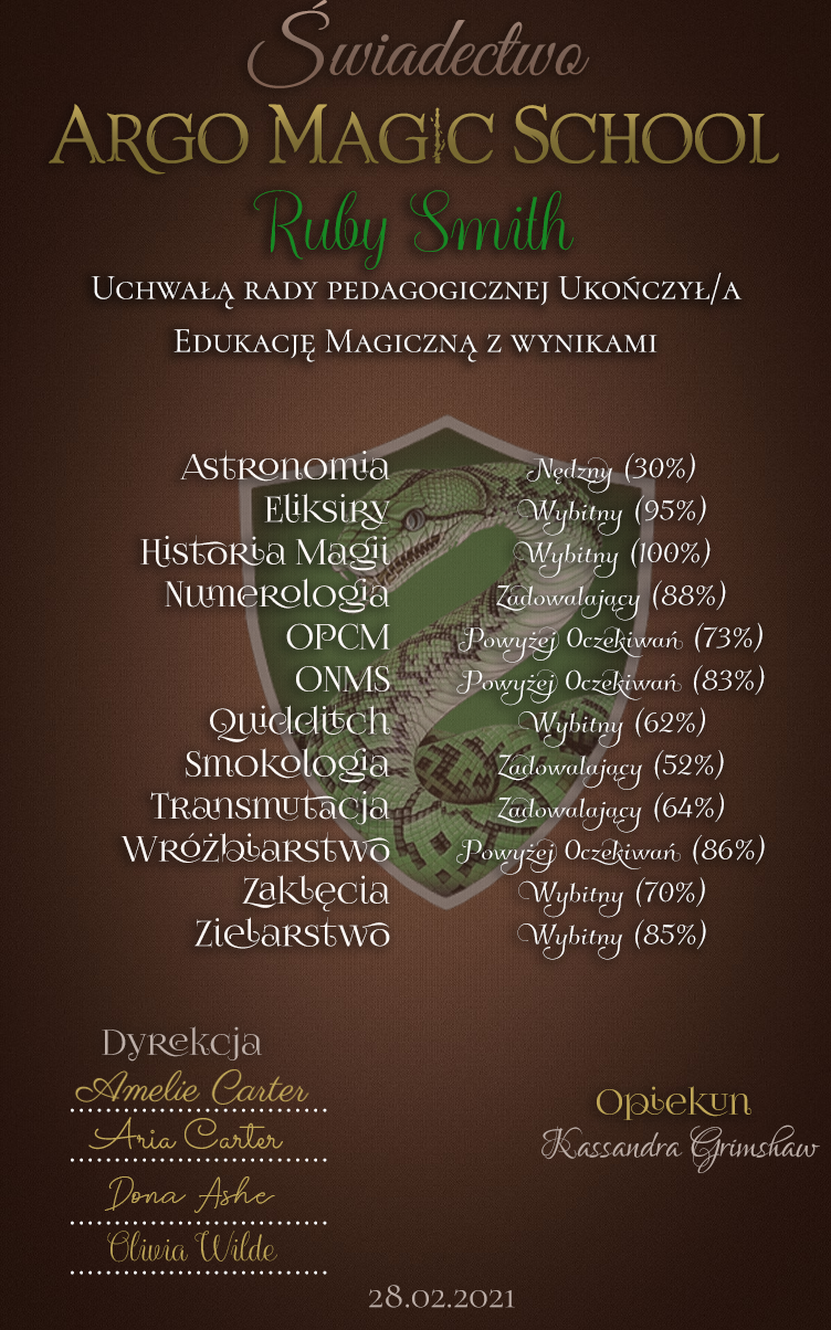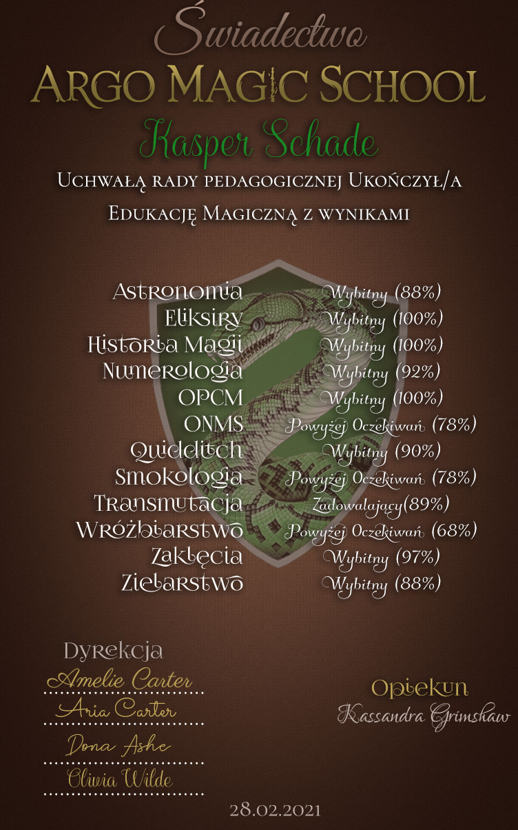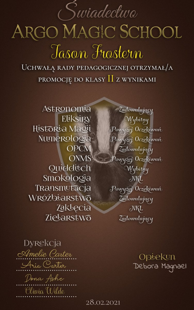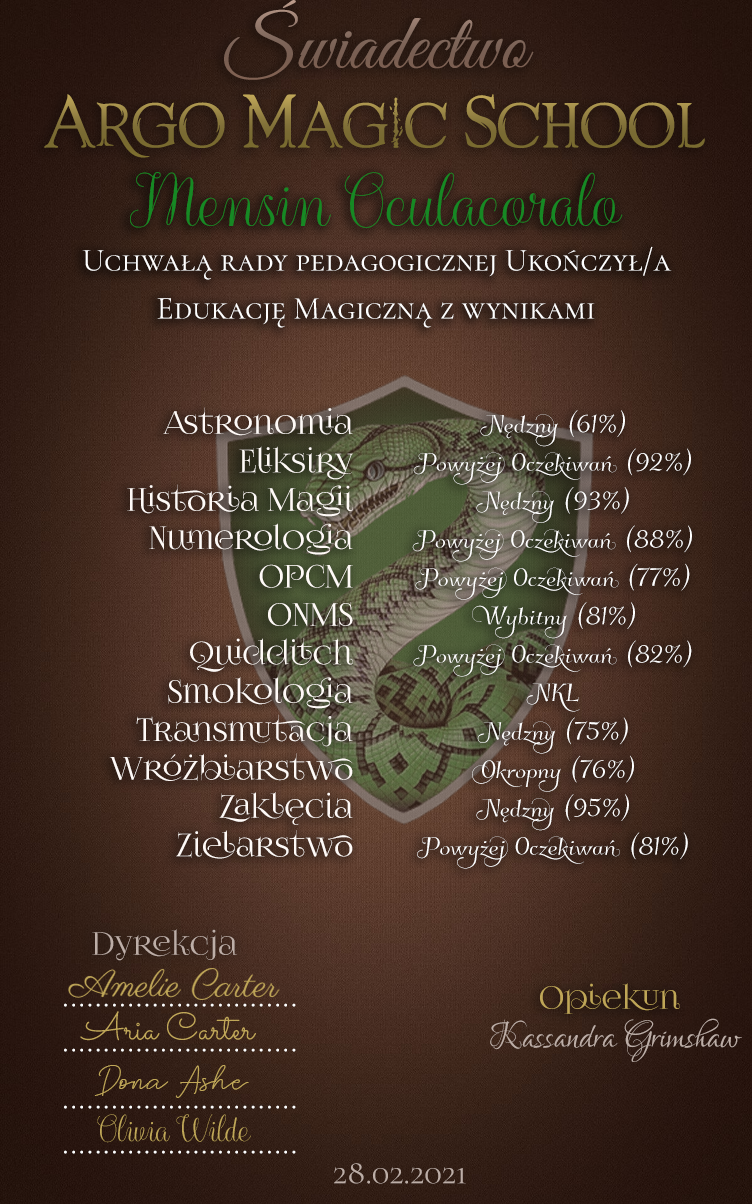 Z lekkim opóźnieniem, ale przychodzę do was z ocenami końcowymi z Zaklęć. Prezentują się one następująco i nie podlegają poprawie: