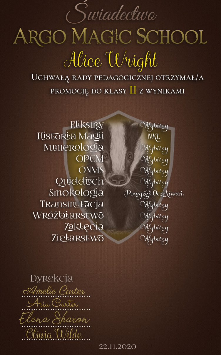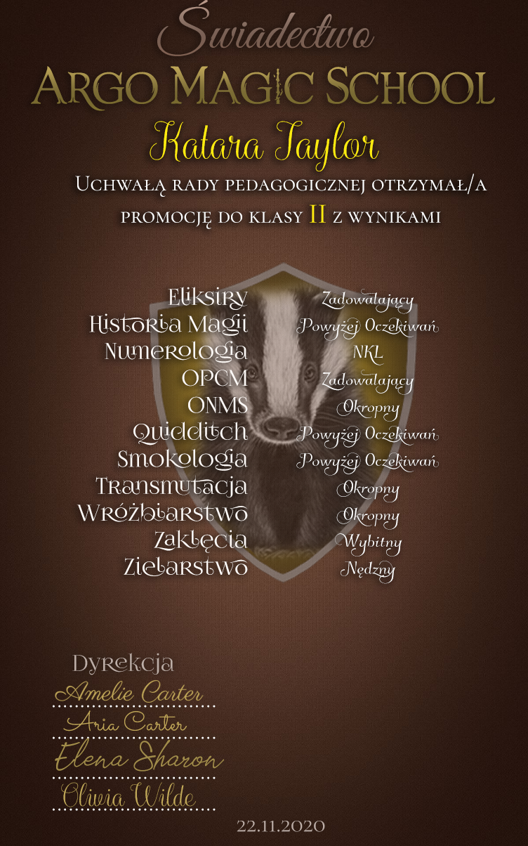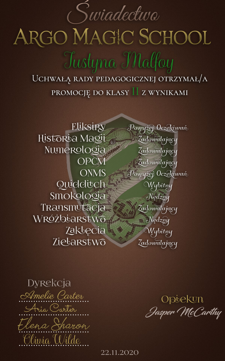 - [S] Justyna Malfoy [świadectwo]