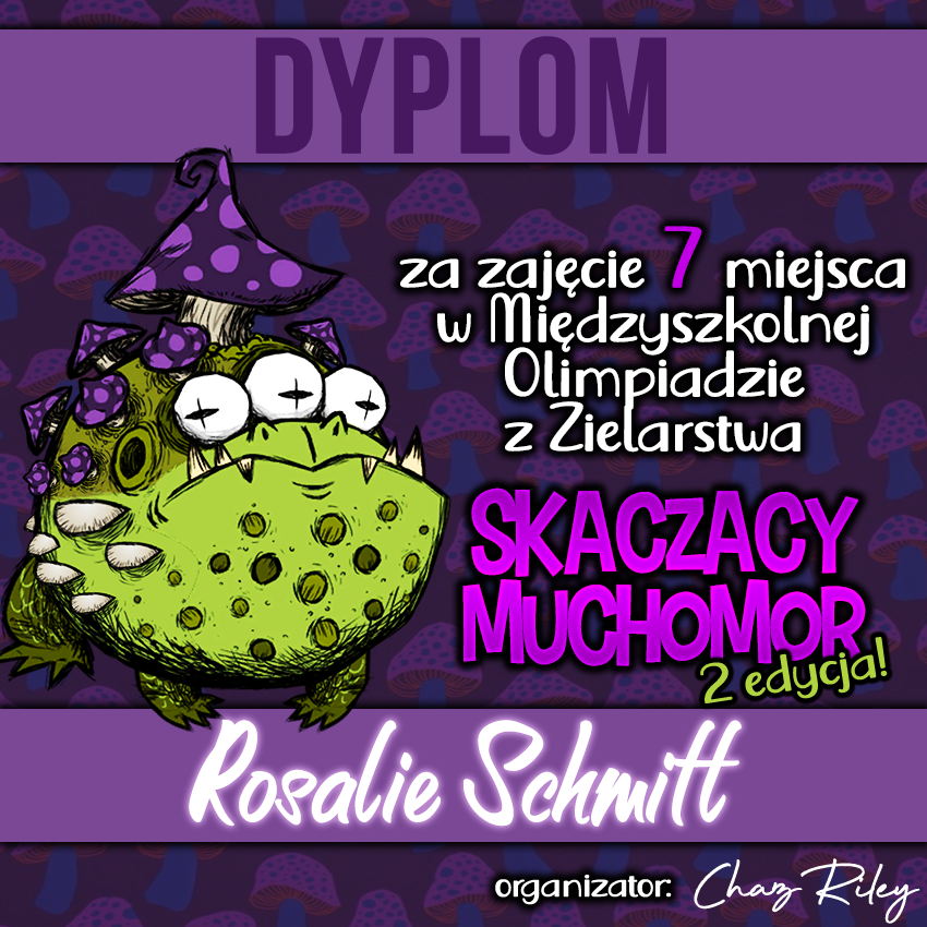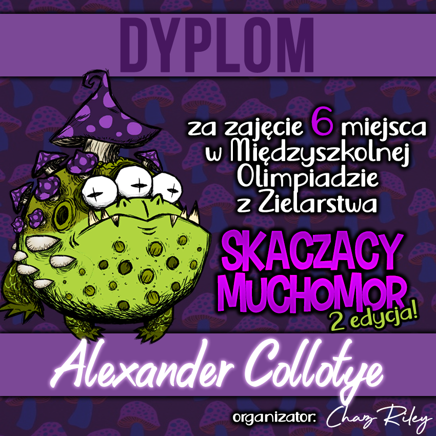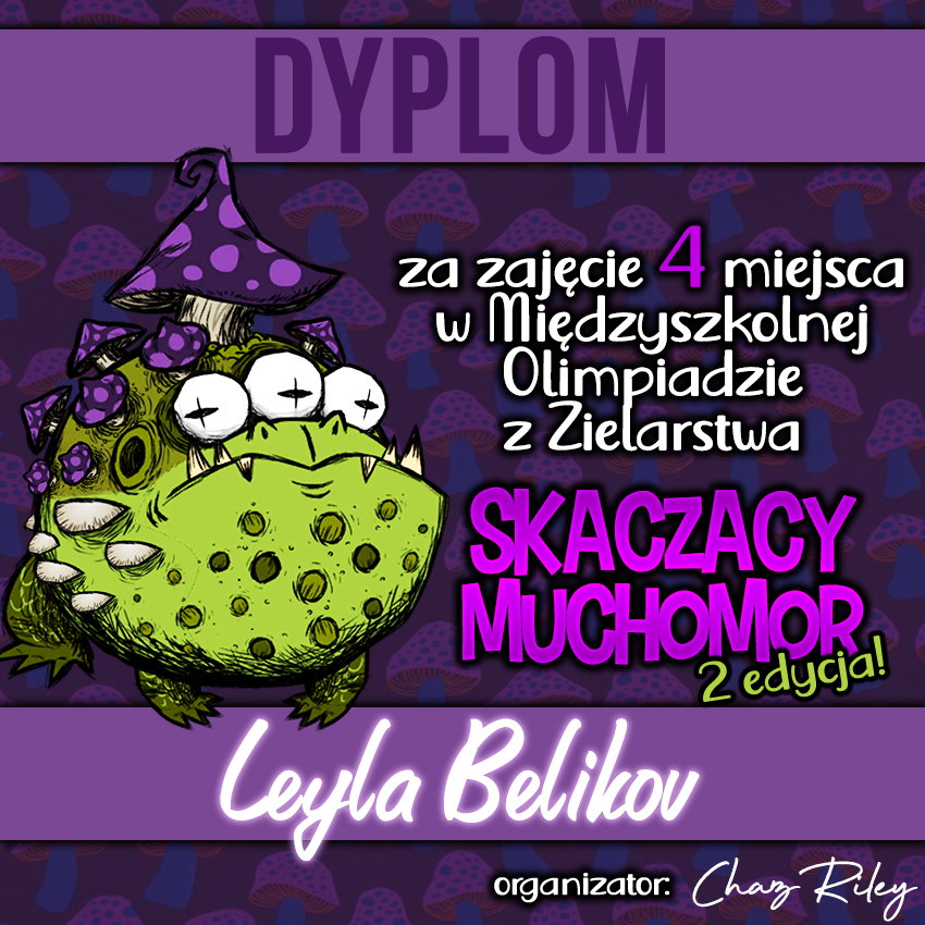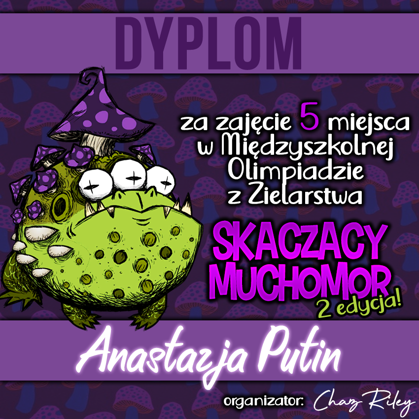 Dzisiaj otrzymaliśmy wyniki Międzyszkolnej Olimpiady z Zielarstwa "Skaczący Muchomor". Z radością informujemy, iż aż 5 osób z Naszej szkoły podjęło się godnego reprezentowania Argo za co bardzo serdecznie dziękujemy!