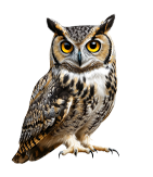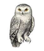 Bardzo rzadki gatunek sowy. Charakterystyczne są jej piękne żólte oczy i czarny dziub. Sowa jest niezwykle oddana i lojalna swojemu właścicielowi.